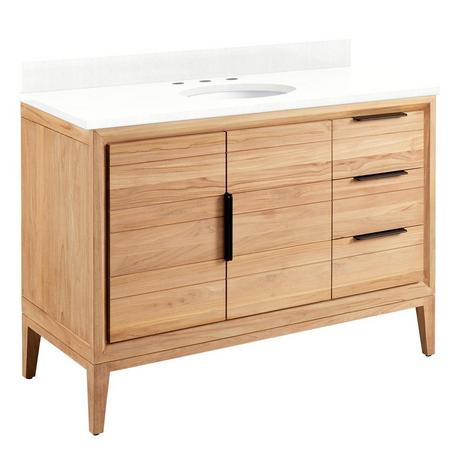 48" Aliso Teak Vanity for Undermount Sink - Java - Feathered White Quartz 8" - White Sink