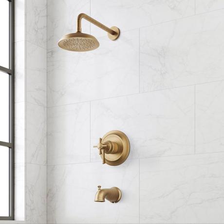 Transform your shower into a luxe experience with the Marceau Dual Control Pressure Balance Shower System. Flaunting refinement from style to performance, classic detailing joins pressure balance technology and a dual-control valve, delivering premium comfort and streamlined adjusting of your water flow and temperature. The included hand shower is complete with an adjustable slide bar, customizing to your desired height with ease. Choose from a variety of lasting, eye-catching finishes to make the Marceau your own.